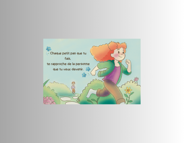 – Illustration de Mia avec message : "Chaque petit pas que tu fais, te rapproche de la personne que tu veux devenir."